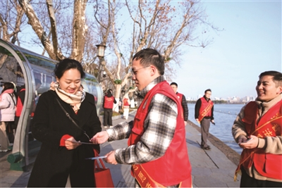 志愿者们随后来到西子湖畔,在北山街上开展普法宣传。通过发放宣传资料、现场接受咨询等方式,为往来市民及游客讲解国家宪法日的由来和宪法相关知识。陈怡真