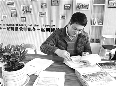 | 王力强检查教育工会创建模范职工之家的资料。 |