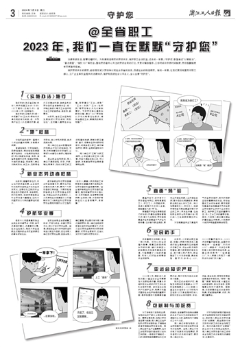法律照进生活,智慧闪耀时代。为构建和谐稳定的劳动关系,维护职工合法权益,过去的一年里,《守护您》版面通过“以案释法”、“普法课堂”、“维权107”等栏目,围绕劳动者关心关注的劳动合同的订立、变更与解除程序,工作时间与休息时间制度、劳动报酬制度等开展宣传报道。