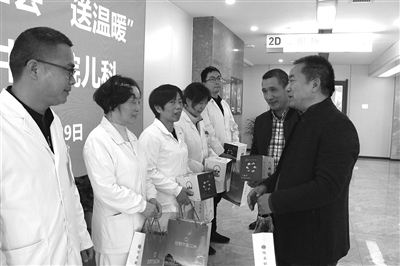 隆冬透寒意,慰问暖人心。入冬以来,呼吸道疾病进入高发季,兰溪市人民医院妇儿院区和兰溪市中医院儿科接诊量剧增,在岗医护人员坚守岗位,连续高强度满负荷运转。为体现工会“娘家人”对医护人员的关心关爱,日前,兰溪市总工会党组书记、常务副主席朱力军一行前往兰溪市人民医院妇儿院区、兰溪市中医院儿科慰问一线医护人员,对大家的工作、生活情况表示关心问候,对大家一直以来的辛勤付出表示衷心感谢,并送上围巾、保温杯和养生壶等慰问品。