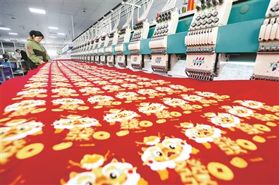 昨日,位于德清县新安镇的浙江三和线业科技有限公司生产车间,工人在检查龙年吉祥物的刺绣产品。新年伊始,该企业150多台电脑绣花机、全自动绕线机开足马力生产,满足春节前市场需求,力争实现首季“开门红”。