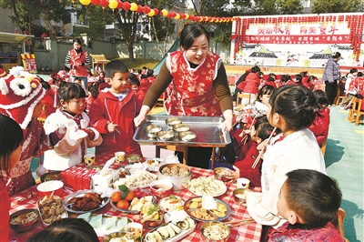 昨日,建德市寿昌幼儿园举行“知年俗 制美食 品年味”主题的年俗周活动。来自全园的350多名孩子在老师的指导下,一起制作汤圆、肉圆、麻糍、春卷、饺子等家乡过年的传统美食,在校园里共同品味一道美味的“年夜饭”。