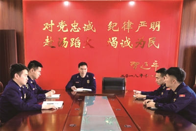 他们以“教育在经常、学习在平常、成效在日常”为目标导向,以“师带徒”为抓手,健全完善领导干部课堂讲、带队干部战场讲、班长骨干操场讲的“三讲”机制,全面营造“传帮带”的学习氛围。图为大队党员干部研讨队伍建设工作。王涛