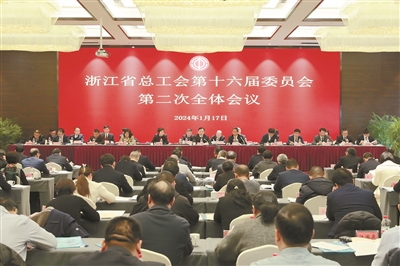本报讯 记者曾晨路报道 1月17日,省总工会第十六届委员会第二次全体会议召开。会议全面贯彻习近平总书记考察浙江重要讲话和同全总新一届领导班子成员集体谈话重要讲话精神,深入贯彻习近平总书记关于工人阶级和工会工作的重要论述,全面落实中国工会十八大和省委十五届四次全会、省委经济工作会议部署要求,回顾总结2023年工作情况,研究部署2024年工作任务。