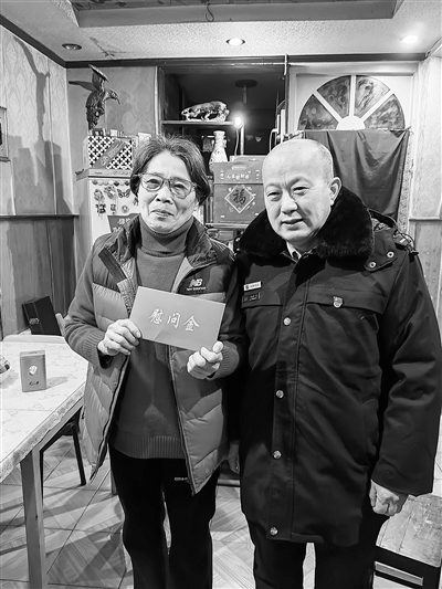 | 省劳模协会为结对劳模(左)送去慰问金。 |
