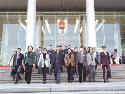 | 大会闭幕后,省政协总工会界别委员们意气风发地走出省人民大会堂。 记者胡翀 摄 |