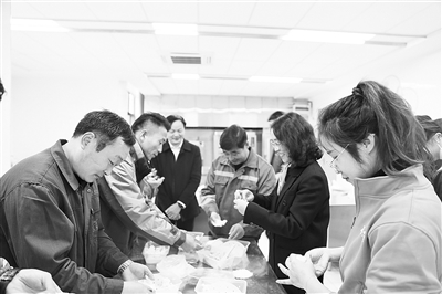 | 工会干部与职工一起“享乐趣”,体验包烧麦。 |