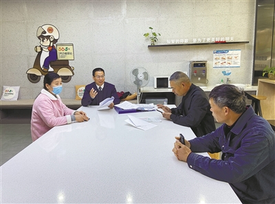 | 律师阮金炳(左二)在“365+劳动者驿站”现场为职工解答法律难题。 |