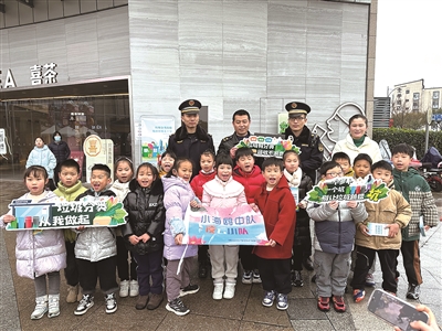 文明践行需要“大合唱”。2月2日上午,越城区综合行政执法队迪荡中队、区公用事业集团环禹公司、塔山中心小学一(3)班凌云小队、阳明中学高一(12)班部分同学,以“守护家园·越分越美”为主题,联合在世贸广场设摊开展宣传活动,通过发放宣传册、发起倡议书等,提高垃圾分类工作的社会知晓率和参与度,引导市民争做垃圾分类“宣传员”“示范员”和“督导员”。