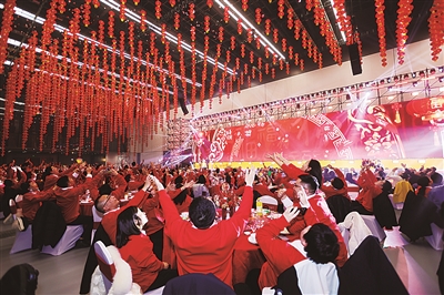 | 为了让留杭外来务工人员在“第二故乡”过上暖心春节,近日,杭州市上城区四季青街道总工会举办了暖“新”年夜饭春节慰问活动,现场为辖区部分快递员、外卖员、网约车司机等送上年夜饭礼盒及新春慰问礼包,并向坚守岗位的一线职工致以新春祝福,让留杭职工就地过年也能感受到年味和温暖。通讯员戴菁 摄 |