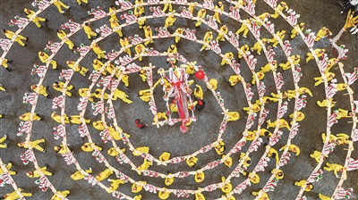 溪港乡是省级非遗小镇,舞板凳龙是安山村每年春节迎新的传统习俗,至今已有400多年历史。今年板凳龙制作历时2个多月,共224节365米多长。