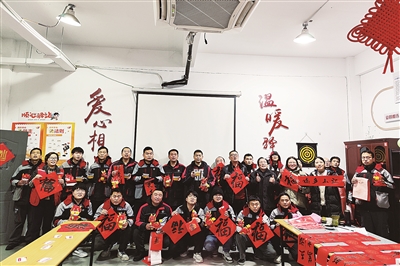 “福”字、对联、“龙娃娃”……活动现场,一份份现场书写的祝福和精心准备的礼品,让大家感受到了“家”的温暖。通讯员杨磊 摄