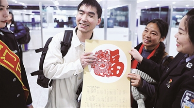 近日,杭州口岸出入境旅客流量大幅度增加,杭州边检民警早早就亲手制作了有边检文化元素的龙年剪纸台历,准备给回杭过年的幸运旅客送上惊喜。