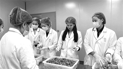 | 曾秋(右二)指导如何辨别栀子花优劣。 |