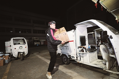 ③在顺丰速运杭州闲林营业网点,晚上7点,快递小哥古志磊正在将收来的客户寄件从小三轮车上向网点搬运,“春节不打烊是我们行业的使命,我们收的件越多说明经济发展越好,新春奋斗正当时,加油干!”古志磊信心满满地说。