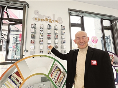 | “看!‘家’里有我的照片。”武建亮指着照片墙自豪地笑着。 记者吴晓静 摄 |