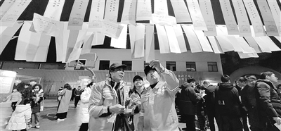 | 环卫工人正在猜灯谜。 通讯员章钟 记者潘仙德 摄 |