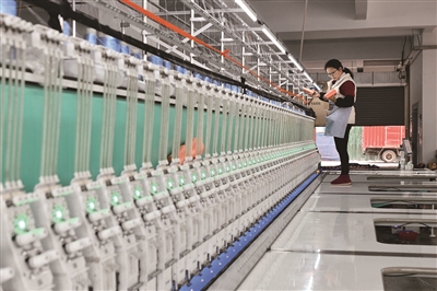 昨日,在杭州艺绣实业有限公司生产车间,工人们在一排自动化机器前赶制订单。目前,该公司日产纺棉布达1万多米,正全力冲刺新春首季“开门红”。通讯员宁文武 摄