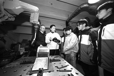 柯桥区教育工会相关负责人介绍,接下来他们将根据学校相关需求,邀请各级劳模工匠进校园分享成才经历和先进事迹,通过推进该活动引导广大青少年形成正确的劳动价值观。图为丁卫松(左1)、丁澄洋(左2)一起为学生答疑解惑。