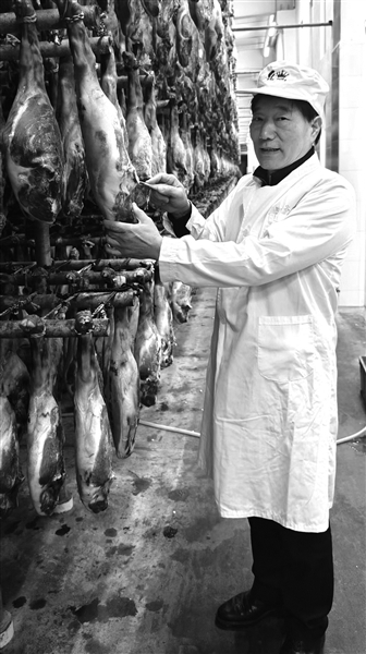 | 张吉林正在查看火腿发酵情况。记者羊荣江 摄 |