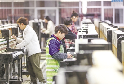 昨日,在德清县洛舍镇东衡村钢琴小镇产业园乐韵钢琴有限公司,工人铆足干劲赶制一批出口欧洲的钢琴订单。今年以来,该公司生产的钢琴及其组件产品外贸出口订单量大增,目前各产品订单已排至今年6月份。