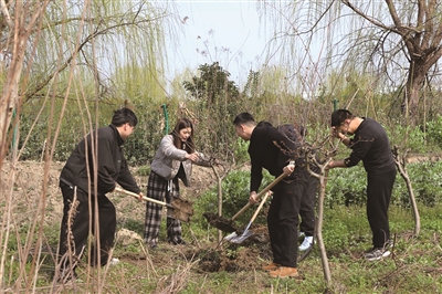 铲土挖坑、挥锹培土、夯实土层、浇水灌根……大家分工有序,井井有条。经过一个小时的辛勤劳动,新栽种的树苗迎风伫立,一片生机。肖乐尘 摄