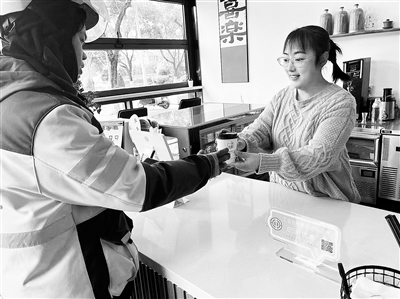 “购买一杯咖啡,可累计一元公益基金。”日前,位于宁波海曙区高桥镇高桥社区党群服务中心的一家基层工会公益咖啡馆对外营业后,迅速成为周边居民、户外劳动者喜爱的网红打卡点。据悉,该咖啡馆特意针对海曙工会会员和快递小哥、网约送餐员、网约车司机、环卫工人等新就业形态劳动者推出85折全年优惠,通过售出咖啡累计的公益基金将补充到高桥社区联合工会公益基金中,用于帮助社区困难职工及需要帮扶的新就业形态劳动者,助力广大劳动者共享幸福生活。图为一名外卖小哥到工会公益咖啡馆享用咖啡。