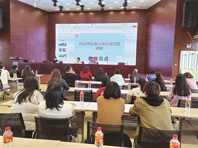 | 近日,杭州市余杭区径山镇总工会召开了企业生活垃圾分类工作推进会,企业工会主席、劳模工匠及镇城管线、经发线、综合执法径山中队等相关人员100余人参会。 会议通报表彰了2023年度企业生活垃圾分类最美单位及个人,邀请“劳模工匠”宣讲垃圾分类,由综合执法人员开展垃圾分类法律讲堂,镇总工会副主席缪温福就企业生活垃圾分类开展业务培训并通报近期工作开展情况。 会上,镇总工会专职副主席许莉敏倡议开展“班前十分钟垃圾分类宣讲”活动,自觉做垃圾分类的带头者、宣传者和监督者,带头养成主动自觉分类投放垃圾的良好习惯,通过行为示范、谈心交流、科普宣讲,让垃圾分类深入人心,不断强化企业主人翁意识,以实际行动践行垃圾分类。 与会人员还实地走访了垃圾分类“赛马”企业,现场指导督促相关工作。杜敏 摄 |