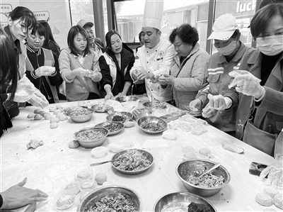 | 日前,台州市椒江区总工会组织各行业志愿者开展“青团飘香传温情,户外驿站共庆春”综合服务活动,内容包括学做青团、赠送法律读本、免费理发、测血压等。 据了解,椒江区总工会充分利用驿站等服务场所,常态化邀请专业人员为新就业形态劳动者开展学文化、学技术活动,组织他们集体过生日、过节日,让驿站成为提供服务的暖心港湾、工会的宣传阵地、新就业形态劳动者的精神家园。图为外卖员等新就业形态劳动者在点心师傅的指导下学做青团。记者潘仙德 摄 |