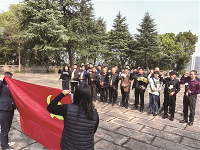活动人员向革命烈士纪念碑敬献鲜花,鞠躬默哀,面向党旗,重温入党誓言。最深的悼念是铭记,最好的纪念是传承。退役军人纷纷表示,要把对英烈的缅怀转化为干事创业的强大动力,立足平凡岗位再建新功。钱影 摄