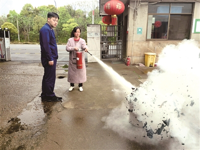活动中,宣传员摁下“一键报警”,对员工们的应急反应能力进行检验,并针对疏散逃生中暴露出的问题提出整改建议。同时,活动通过宣传车播放事故案例警示教育片,组织员工开展油盆灭火演练等,对员工进行消防安全教育培训。 詹晨阳 摄
