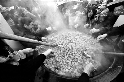 在开幕式现场,笔者看到一口直径达1.2米的大铁锅,码着切好的笋段,咕嘟咕嘟冒着热气。两位大厨挥动着铲子不断翻炒,游客们争先恐后上前品尝,整个弘杨村空气中弥漫着春笋的香甜味道。
