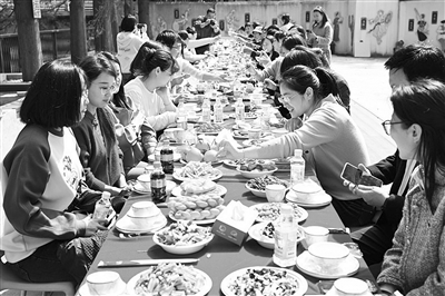 青团、馓子、油饼……近20米的长桌上摆满了多民族美食。男女老少、街坊四邻齐聚一堂,共品各色美食、共赏特色节目、共享趣味游戏、共叙邻里亲情。