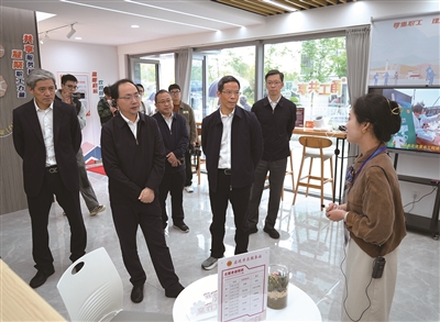 | 与会人员在宁波工会启运片区服务站与工作人员亲切交流。 记者金钧胤 摄 |