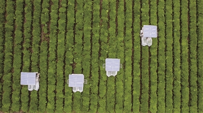 近日,金华市婺城区一处茶园里,由浙江省农业机械研究院研制成功的新型国产乘坐式采茶修剪一体机在进行采茶机械化作业。新型国产乘坐式采茶修剪一体机不仅具备采摘功能,还可完成修剪作业,实现采修一体化,提高了茶叶采收效率。