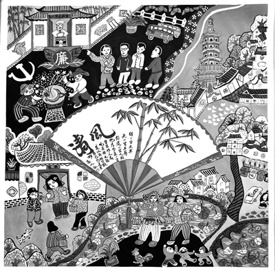 图为职工创作的清廉文化作品,以书颂廉、以画倡廉。
