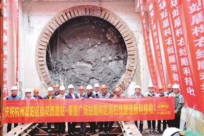 4月23日10时25分,随着刀盘缓缓转动,杭州市富阳区桂秦区间右线盾构机破墙而出,顺利接收,至此桂秦区间盾构双线贯通!