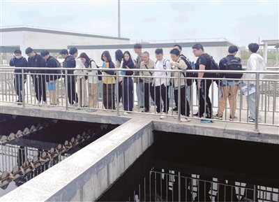 在技术人员与志愿者带领下,师生们实地踏看了污水处理生产线,详细了解处理工艺流程、尾水排放标准等情况。通过现场观摩及交流学习,师生们将课本知识与鲜活实践结合起来,更加直观感受到污水处理成果,深刻体会到污水处理以及环境保护的重要性。