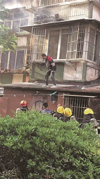 | 火被扑灭后,陈鹏从楼上往下爬。 |