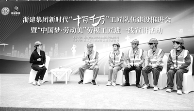 “我是一名光荣的工匠,我宣誓将以匠心铸魂,建盛世经典。”近日,在浙建集团所属浙江省三建建设集团西湖大学新制造业项目现场,百余名建筑工人齐聚一堂,举行新时代“十百千万”浙建工匠队伍建设推进会暨“中国梦·劳动美”劳模工匠宣讲活动,表彰一批高素养劳动者,分享优秀工匠成长成才经验。