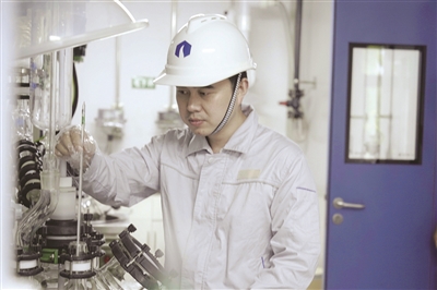 | 杨艺正在中试车间做脱氯还原中试。 |