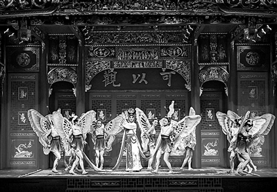 伴随着紧密的鼓点声,板凳龙从台上“游”到台下,与观众近距离接触,大家聚精会神,举着手机拍照录像,不愿错过一个精彩瞬间。吸睛程度能与之相媲美的是另一项国家级非遗项目婺剧,一段段经典剧目接连上演,现场掌声、呐喊声、叫好声不断,无人不为之着迷。