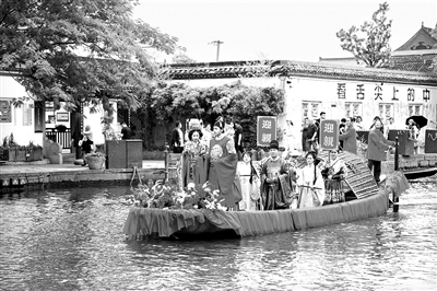 河水悠悠,游船轻摇。日前,一场主题为“良缘共筑 幸福起航”的明制水乡婚礼在绍兴柯桥安昌古镇举行。婚礼现场,新郎身着盛装,等待着心上人的来临,新娘轻移莲步款款而来,在众人的祝福中,迎亲礼缓缓拉开帷幕。