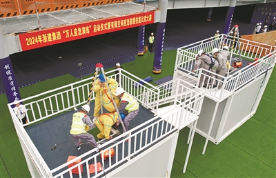今年6月是第23个全国“安全生产月”,主题为“人人讲安全、个个会应急——畅通生命通道”。日前,由浙江省建设投资集团股份有限公司主办,浙江省一建建设集团有限公司承办的2024年浙建集团“万人应急演练”启动仪式暨有限空间应急救援技能比武大赛观摩活动,在“浙江一建”承建的杭州临平文化综合体项目工地举行。