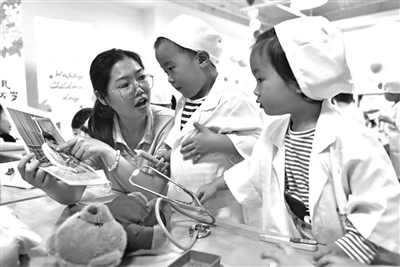 日前,绍兴市人民医院工会在医院职工托育中心为职工子女举行“六一”活动,通过“我是小小绍医人”等情景模拟游戏,让孩子们体验白衣天使救死扶伤的崇高精神。