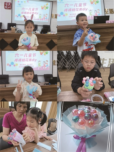 临平梅堰社区“儿童节”开展棒棒糖花束制作活动