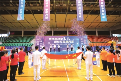 国网台州市黄岩区供电公司职工趣味运动会近日在黄岩体育馆开赛。本次运动会以“拼搏超越争‘三先’ 团结互敬展风采”为主题,旨在传递健康理念、增强团队合作、提升公司凝聚力。