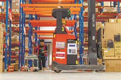6月17日,位于金华市金东区孝顺镇的金义综合保税区京东仓内,工人正在对跨境商品进行分拣、包装,发往全国各地,满足“618”消费高峰需求。