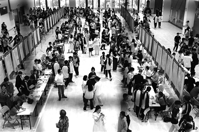 本次招聘会共有80余家用人单位提供2600余个岗位,初步达成就业意向660余人,发放各类宣传资料1200余份。图为招聘会现场。
