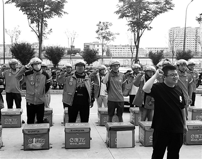 日前,温州市龙湾区总工会在蜂鸟即配永强站户外劳动者驿站举办龙湾区外卖配送行业工会联合会集中入会仪式。来自辖区外卖配送行业的30余名外卖骑手代表宣誓入会。这意味着该区外卖骑手们有了“新家”。图为骑手代表宣誓入会。